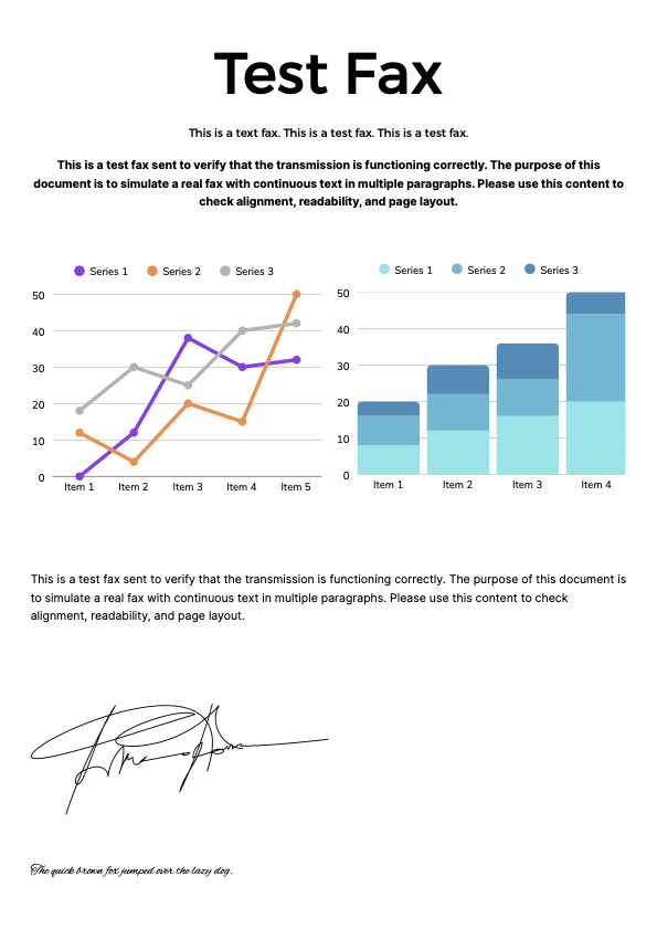 Fax quality is excellent and comparable to Fax.xyz. Text is clear and fully legible, even at small font sizes, and images retain all their details, ensuring professional-quality transmissions every time.