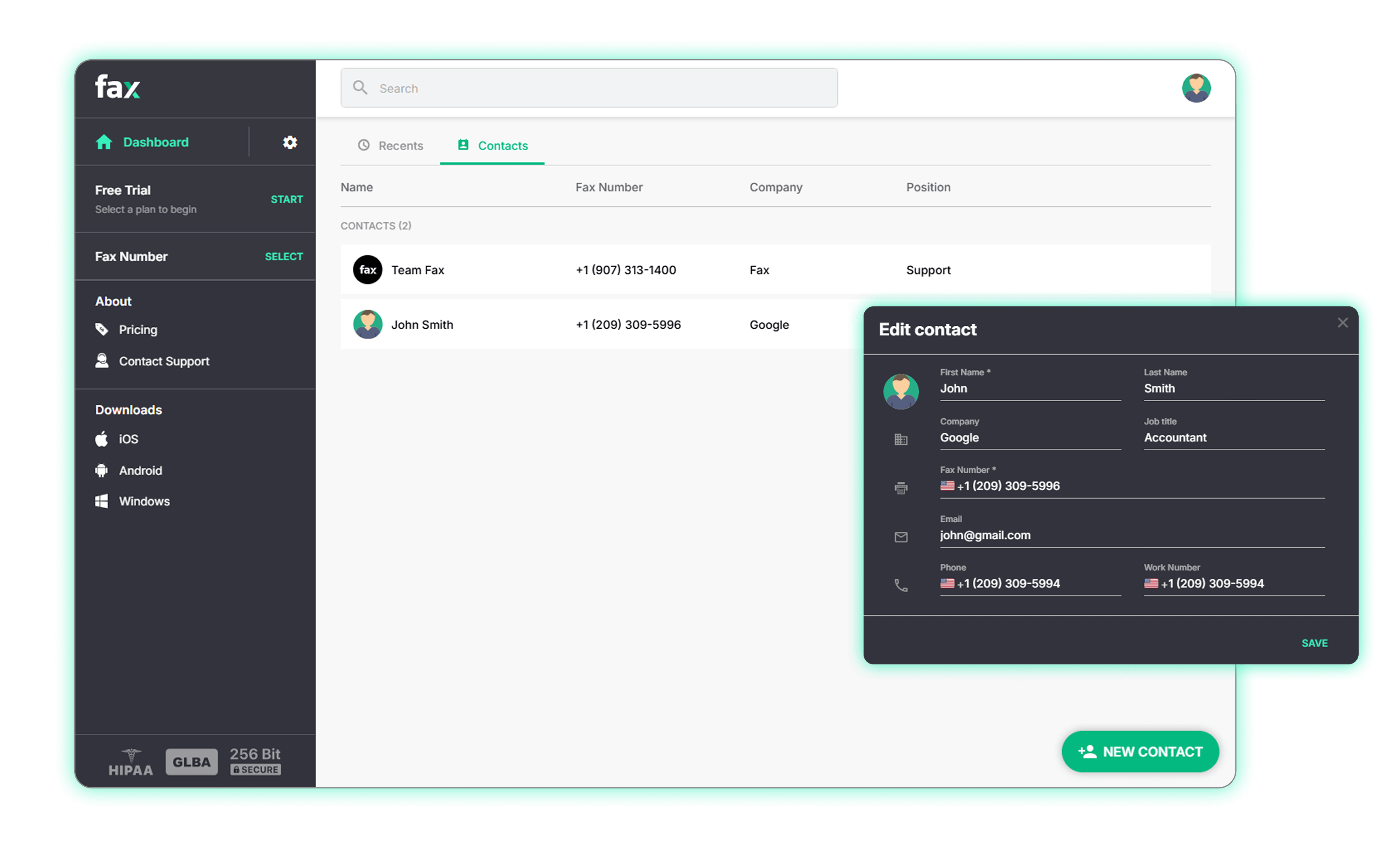 Download our fax app, create an account to start your free trial, and experience effortless faxing on mobile, desktop, and web.