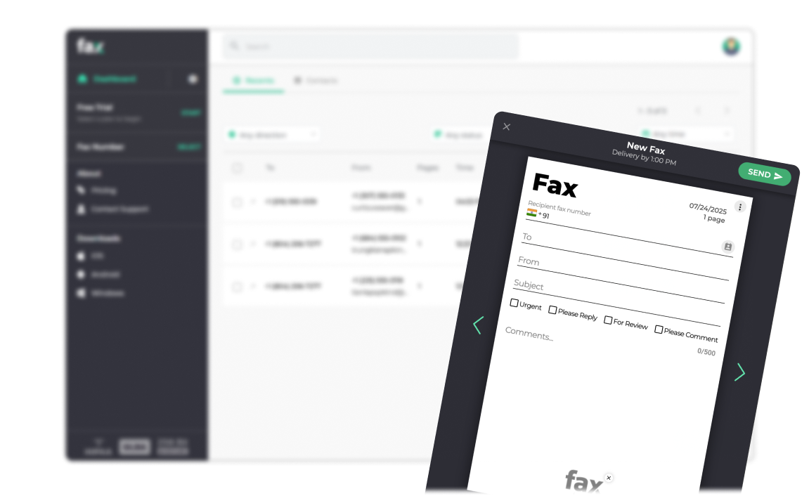 Pick a template, fill in your details, and send your fax in seconds at no additional cost.