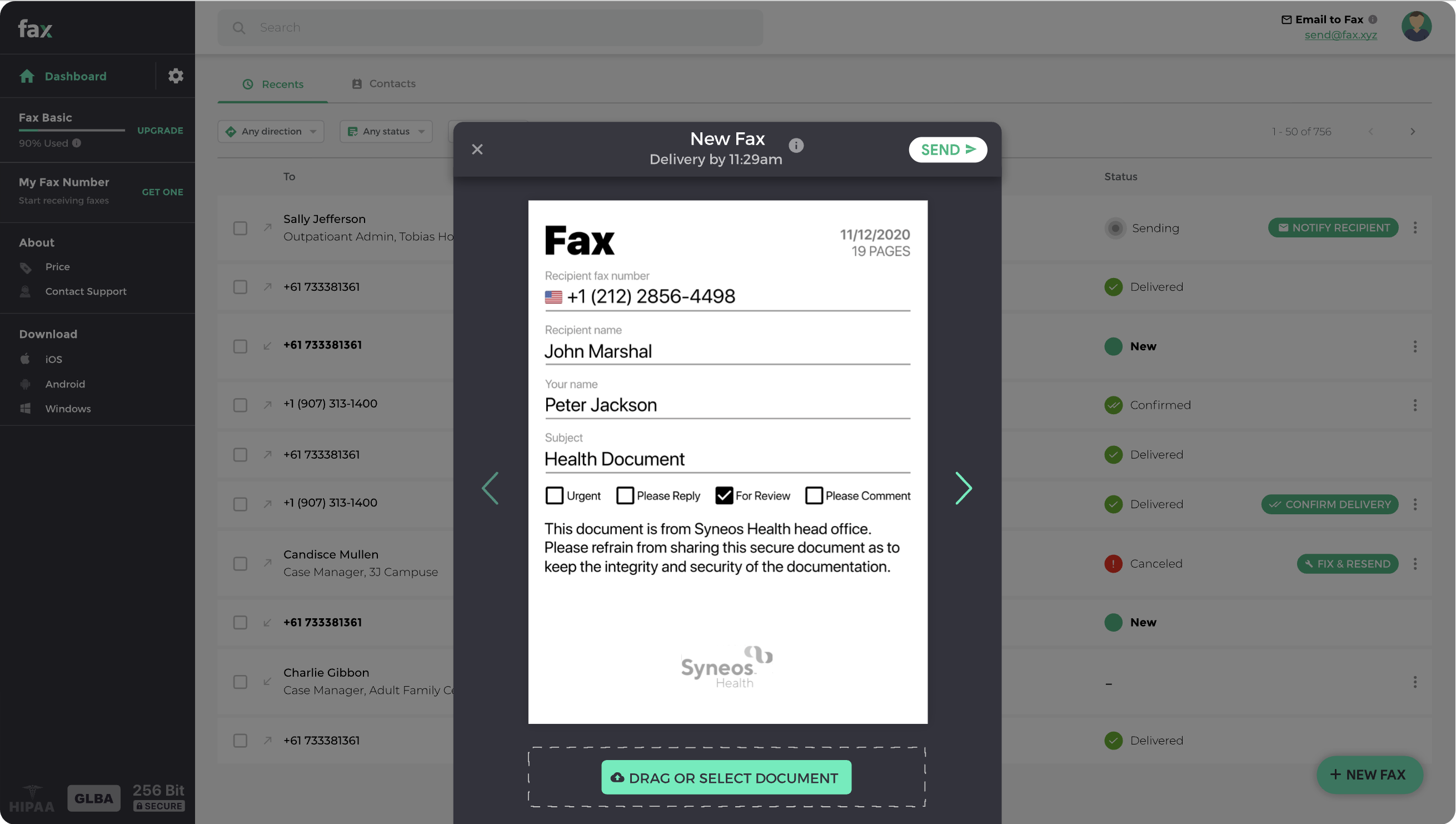 Real-time delivery confirmations and cloud storage let users track every fax with confidence.