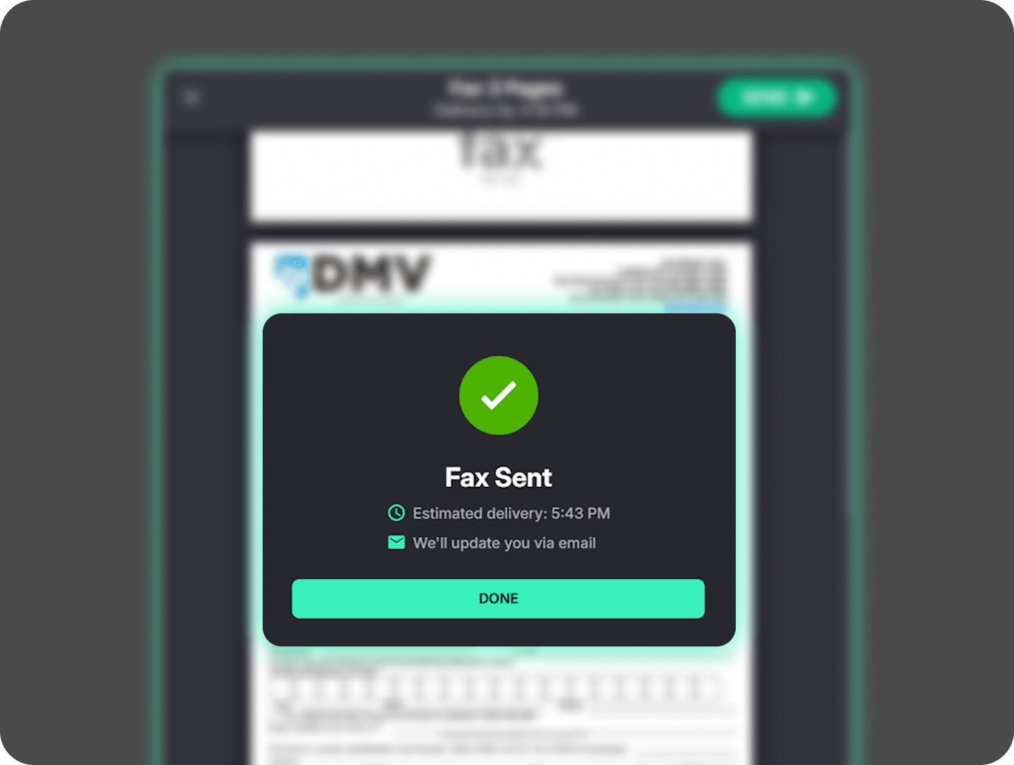 Send your DMV faxes from your phone, tablet, or computer — anytime, anywhere.