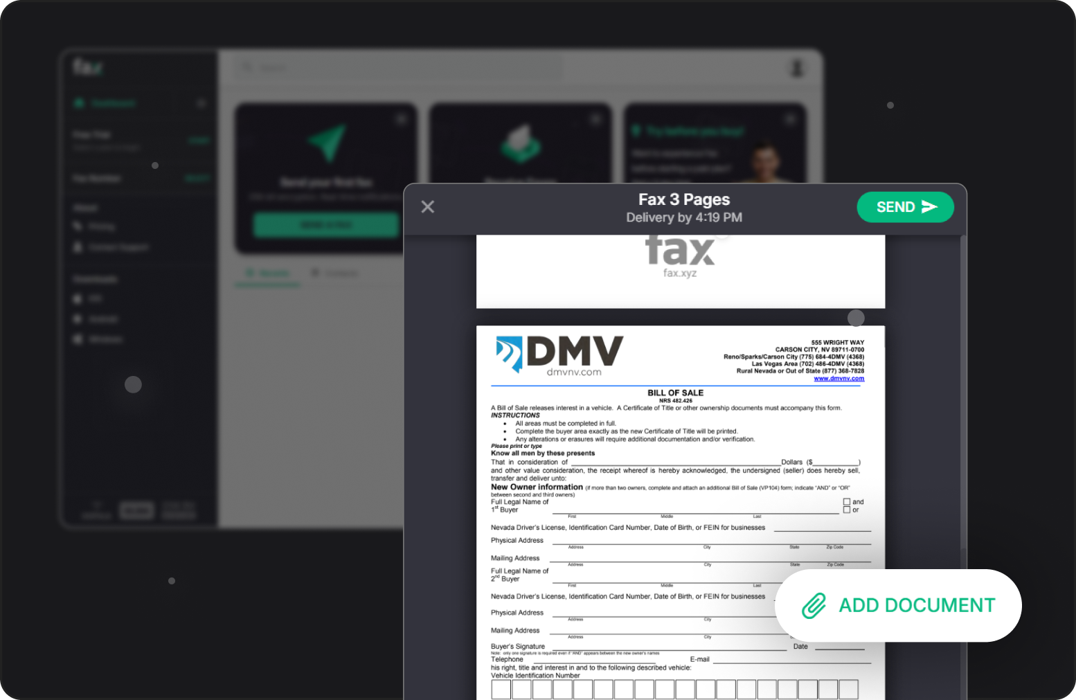 Whether your DMV requires faxed forms for processing or accepts them as proof of submission, Fax.xyz makes it effortless to send, track, and confirm delivery in seconds.