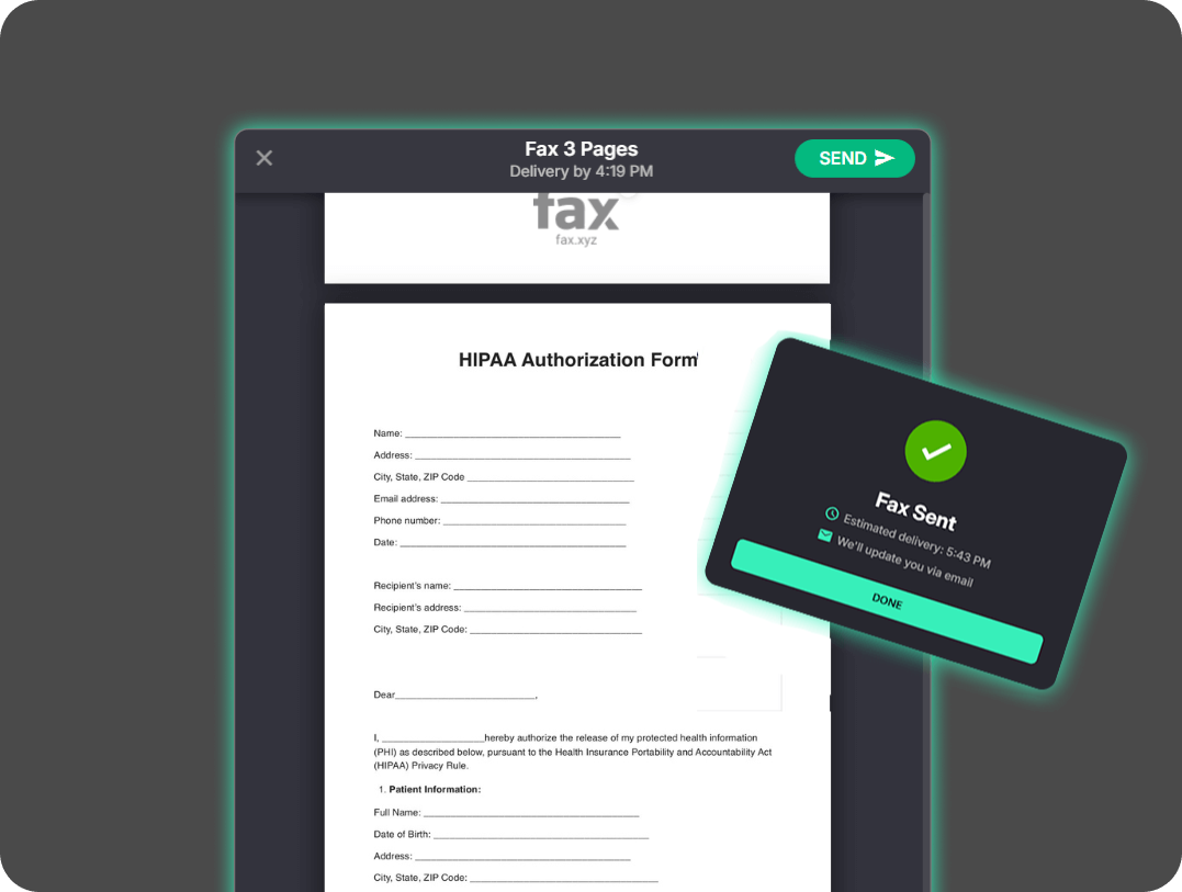 Once you’ve obtained the proper authorization, Fax.xyz makes it simple to fax and release medical information securely online.
