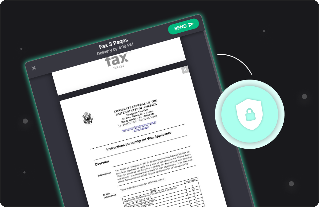 Yes. With Fax.xyz, your immigration documents are protected by advanced encryption from upload to delivery. Every fax is transmitted through secure channels and stored safely, ensuring only authorized recipients can access your information. You also get delivery confirmation for complete peace of mind.