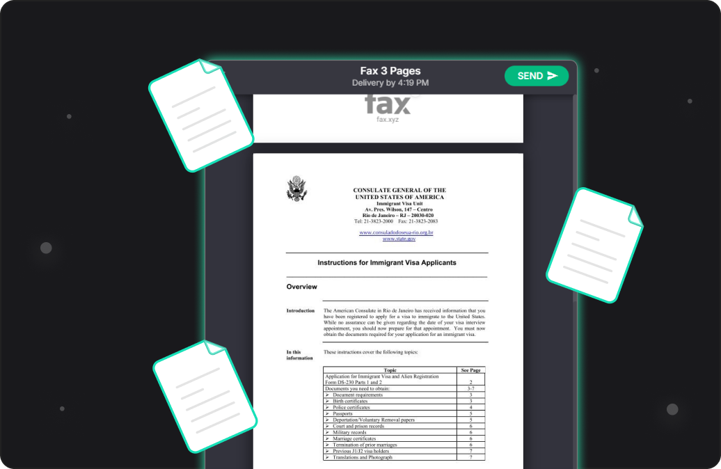 With Fax.xyz, your documents reach immigration offices, lawyers, or agencies in record time.